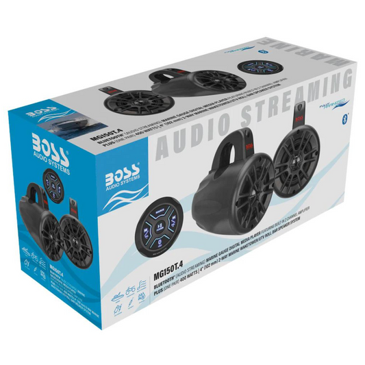Boss Audio MG150T.4 Marine Gauge Digital Media Receiver & 4" Waketower Speakers
